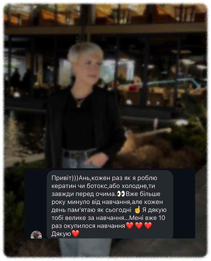 Мій підхід відрізняється від більшості курсів на ринку. Я не просто показую, як наносити склад – я навчаю думати та аналізувати.