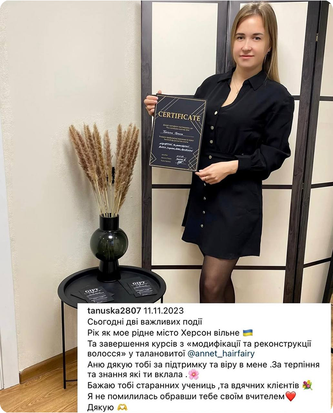 За роки роботи я зібрала всі найскладніші кейси та помилки, щоб створити систему, яка працює на будь-якому типі волосся. Моя мета – щоб ти вийшла від мене професіоналом, а не просто «дівчинкою, що прасує волосся».